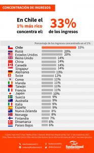 En Chile, el 1% de las personas de mayores ingresos concentran el 33% de los ingresos totales. En Holanda el 6%, Finlandia 7%, Australia 9%, Alemania 13% y Estados Unidos 20%. Nuestro país encabeza el vergonzoso ranking de la Desigualdad», señaló la Fundación Sol en twitter.