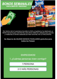 La estafa más reciente ha sido identificada en México y circula vía WhatsApp, a través de un supuesto mensaje de las autoridades locales, en el que anuncian el pago de “bonos semanales” para la compra de alimentos y medicinas “con motivo de la Cuarentena Mundial”.