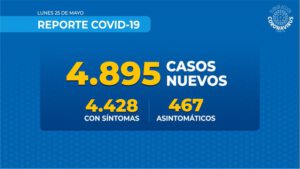 A las 21 horas de ayer se produjo la mayor cantidad de casos en Chile en un día, así lo informó el equipo del Minsal al dar a conocer la cantidad de 4.895 personas con examen PCR positivo, alcanzando hoy a 73.997 las que han enfermado de Covid-19.