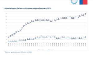 A 486 asciende en este momento la cantidad de pacientes Covid-19 internados en alguna UCI del país, 61 personas más que el 1 de mayo cuando el Minsal señaló que eran 425 los que se encontraban en ese estado, 62 de ellos críticos.