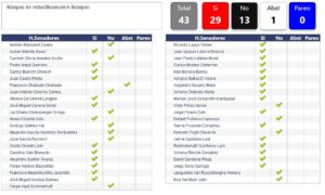 Finalmente, con 29 votos a favor y 14 en contra, la Sala se inclinó por la postura de que se requieren 3/5, es decir 26 votos para su aprobación.