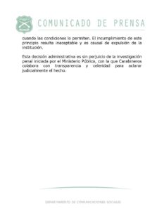 La jefatura de la Región Metropolitana desvinculó a ambos capitanes- A uno por no haber realizado indagaciones para investigar el estado de salud y prestar auxilio a una víctima, omitiendo el procedimiento legal correspondiente y al otro porque, si bien tomó conocimiento de lo ocurrido a Campillay, no desplegó iniciativa alguna para socorrerla y declaró hechos contradictorios con lo ocurrido.