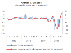 El resultado del Imacec se vio impactado por los efectos de la emergencia sanitaria asociada al Covid-19, que influyó en la movilidad de las personas y el normal funcionamiento de establecimientos productivos.