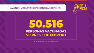 De acuerdo con los datos entregados por el Departamento de Estadística e Información de Salud, el ministro de Salud, Enrique Paris, informó que hasta las 11:28 horas de este viernes 5 de febrero, 50.516 personas se han inmunizado durante la tercera jornada de la campaña de vacunación masiva contra el COVID-19.