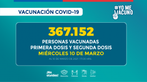 Al respecto, el ministro de Salud, Enrique Paris, detalló que, en la jornada de hoy miércoles 10 de marzo, hasta las 18:00 horas, se han inmunizado un total de 123.601 personas con primera dosis y 243.551 personas con segunda dosis.