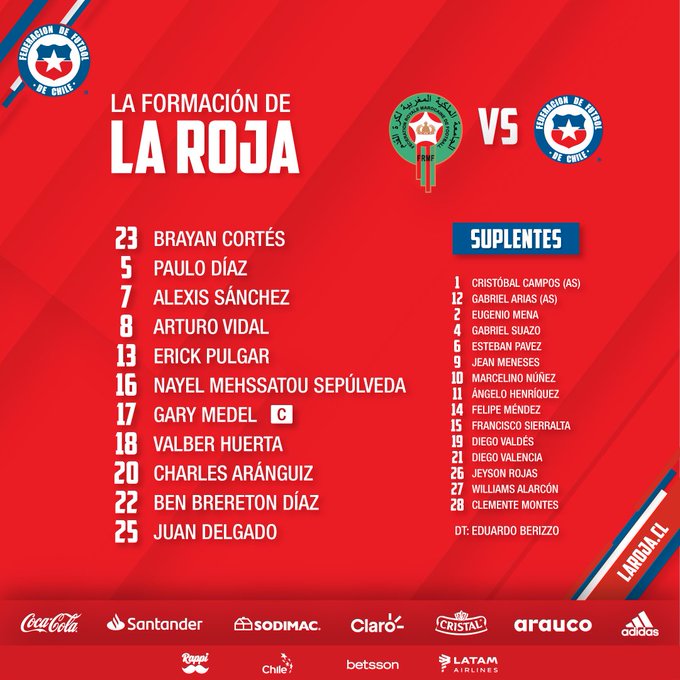 📺 @chilevision y @TNTSportsCL #VamosLaRoja #VamosChile pic.twitter.com/ujTY1lxPvz— Selección Chilena (@LaRoja) September 23, 2022