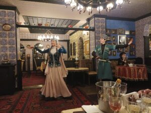 La primera salida es a conocer Bakú de noche y detenernos a cenar en uno de los restaurantes más típicos, Sirvansah, ubicado en el corazón histórico de la ciudad. Es un destino culinario que captura la esencia de Azerbaiyán a través de su rica gastronomía y ambiente evocador que refleja la opulencia y la historia de la dinastía que gobernó la región durante la Edad Media.