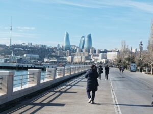 Desde que te bajas del avión, en el aeropuerto Heyder Aliyev, sabes que estás en un destino diferentes, aquellas ciudades que no existen en otros lugares, que mezclan culturas y fueron el sitio de paso de cientos de miles de caravanas cuando el comercio se movía en esa zona por tierra, arena y mar.