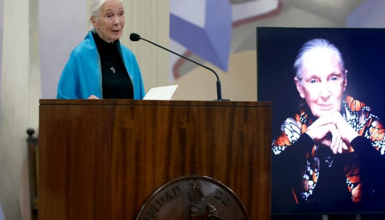 La destacada primatóloga británica fue reconocida a nivel mundial por sus revolucionarios estudios sobre chimpancés, su aporte a la ciencia y su activismo en materia medioambiental. Fue en este contexto, que en su última visita a Chile, en agosto de 2024, recibió el reconocimiento de Doctora Honoris Causa por la Universidad de Chile.