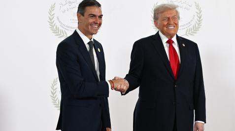 Durante su discurso en la cumbre de Sharm el Sheij, el presidente estadounidense aludió al bajo gasto en defensa de España, aunque suavizó el tono destacando un "trabajo fantástico". El encuentro marcó el primer saludo entre Trump y Pedro Sánchez desde el regreso del republicano a la Casa Blanca.