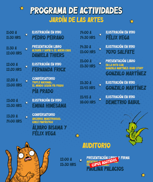 El festival organizado por Grupo Planeta se llevará a cabo el sábado 8 de noviembre desde las 11:00 horas en la Fundación Cultural de Providencia (Av. Nueva Providencia 1995). En este espacio dedicado a celebrar la creatividad, la ilustración y las historias, el público podrá disfrutar de actividades imperdibles: dibujantes creando en vivo, firmas de libros y presentaciones exclusivas.