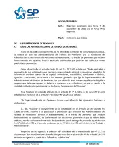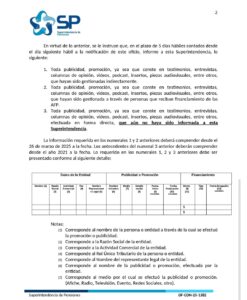 La Superintendencia de Pensiones (SP) emitió este lunes el Oficio Ordinario OF-CON-25-1382, dirigido a todas las Administradoras de Fondos de Pensiones (AFP), instruyendo la entrega de información detallada sobre toda publicidad, promoción o difusión pública que las entidades hayan realizado desde el año 2021 a la fecha, ya sea de manera directa o indirecta.