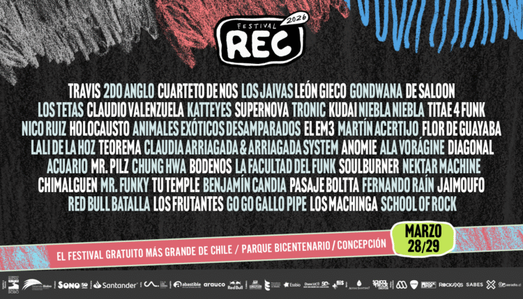 El Festival REC dio a conocer su programación (line up) para los días 28 y 29 de marzo en el Parque Bicentenario de Concepción, manteniendo su carácter gratuito y abierto a la comunidad.