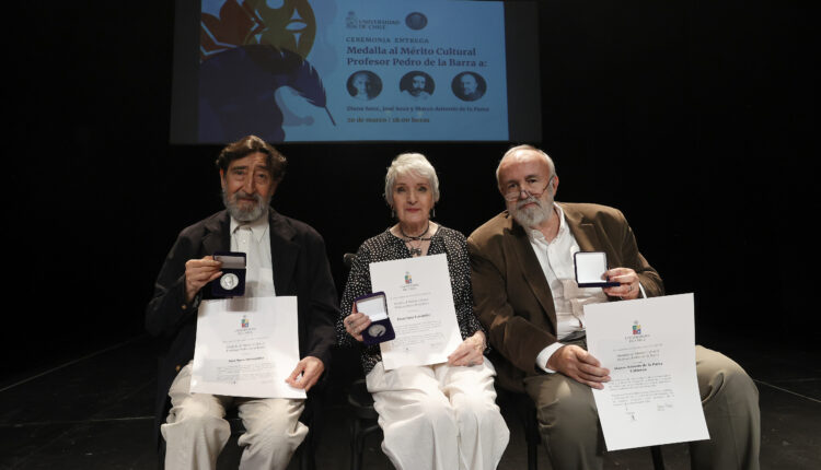 La Universidad de Chile entregó la Medalla al Mérito Cultural Profesor Pedro de la Barra a los actores Diana Sanz y José Soza, junto al psiquiatra y dramaturgo Marco Antonio de la Parra, en reconocimiento a su contribución al arte y la cultura del país. La ceremonia se desarrolló en el Teatro Nacional Chileno y fue encabezada por la rectora Rosa Devés.